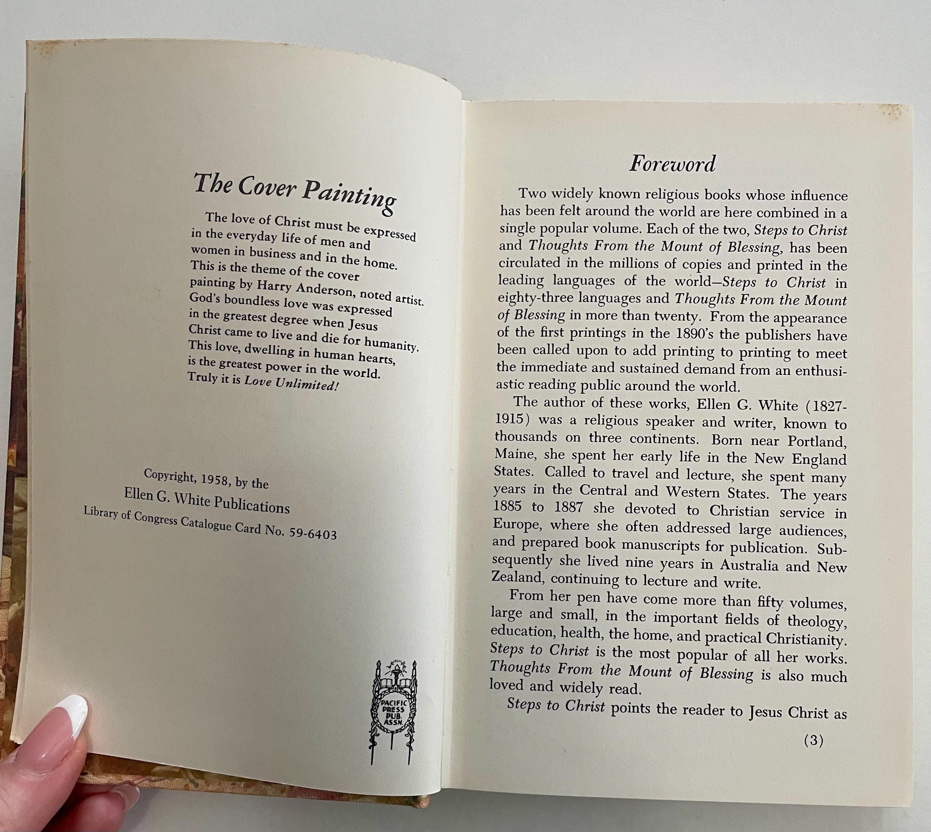 This book combines 'Steps to Christ' and 'Thoughts From the Mount of Blessing'.