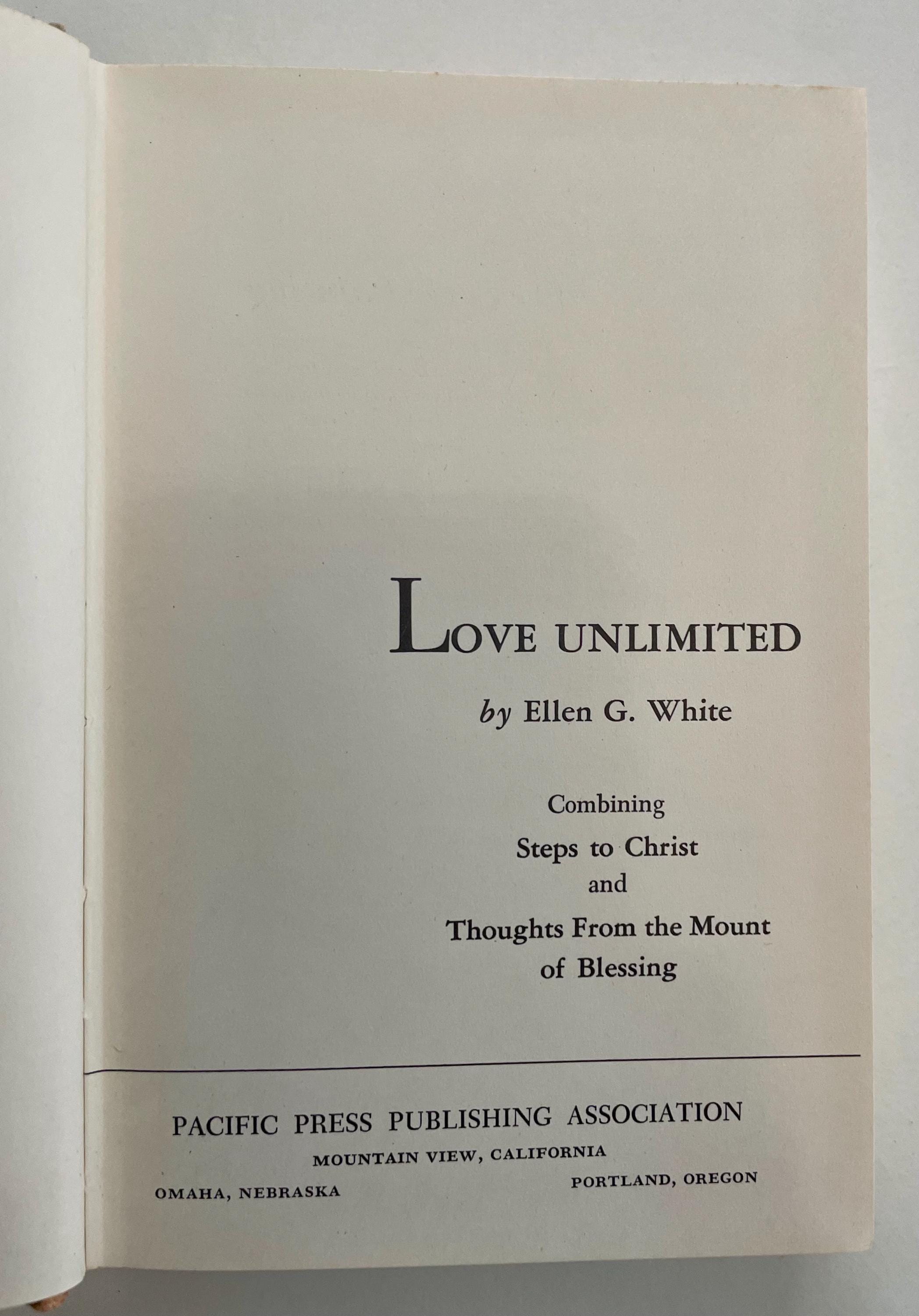1958 Vintage Christian Book, Love Unlimited by Ellen G. White, hardcover
