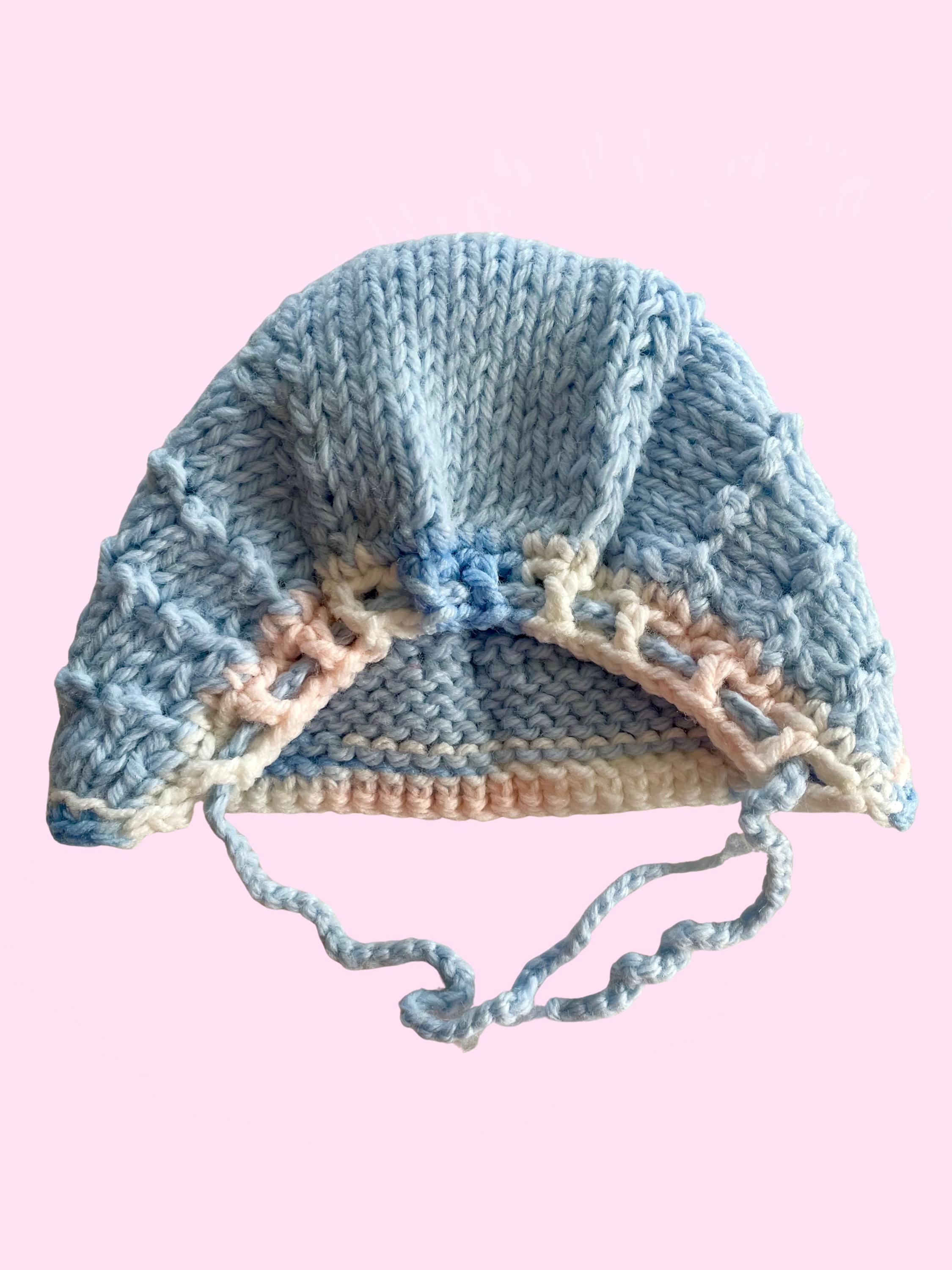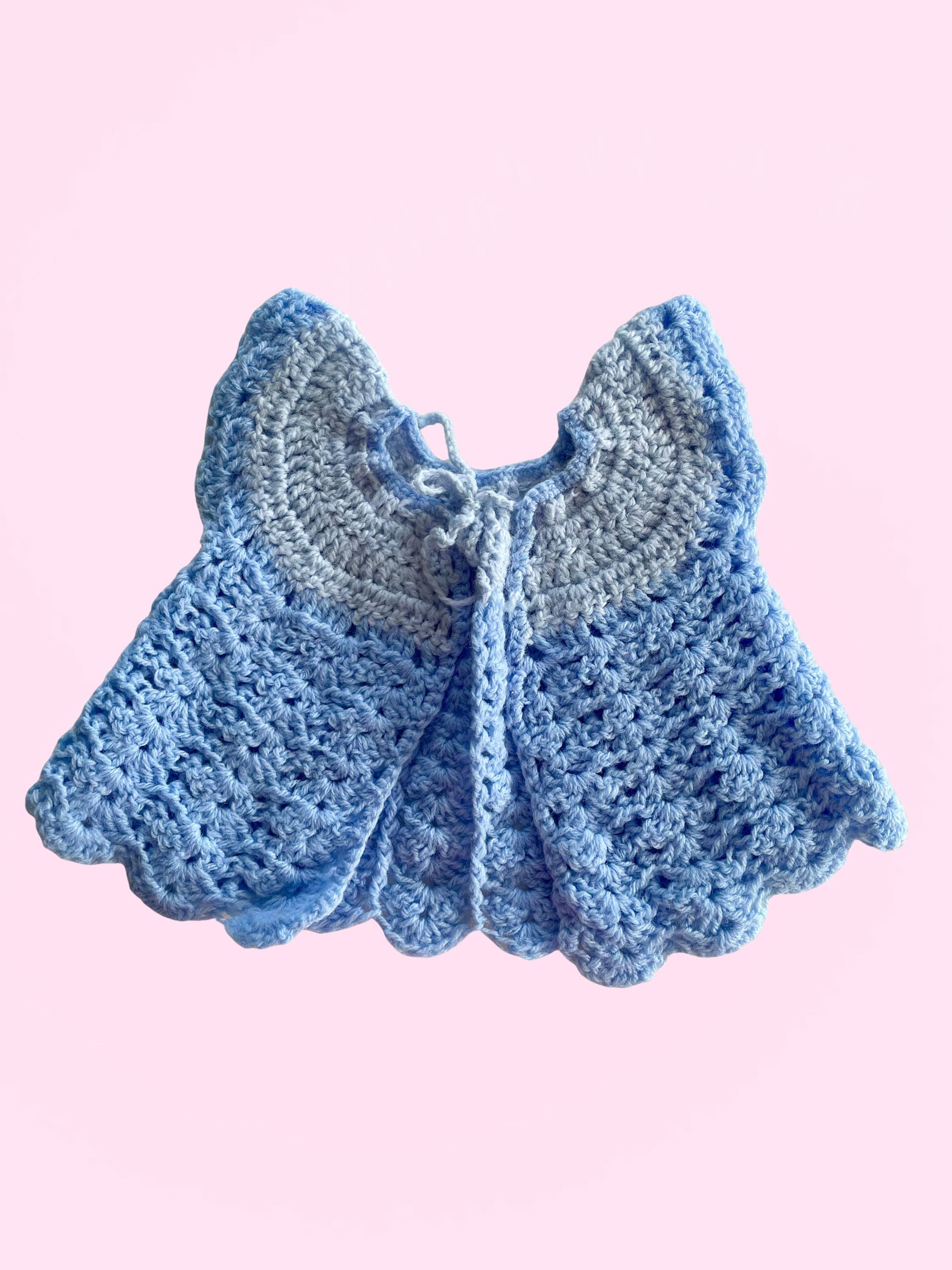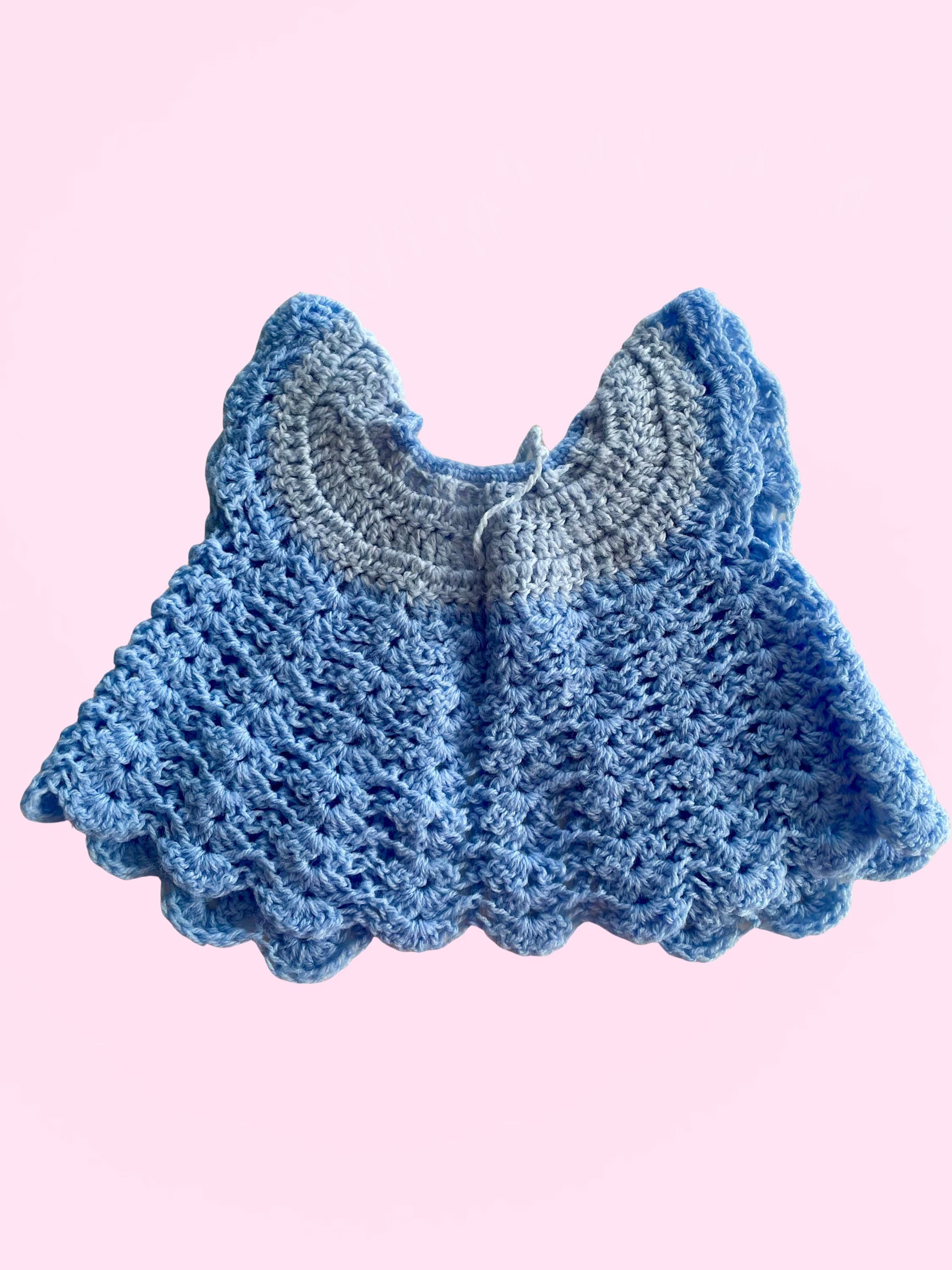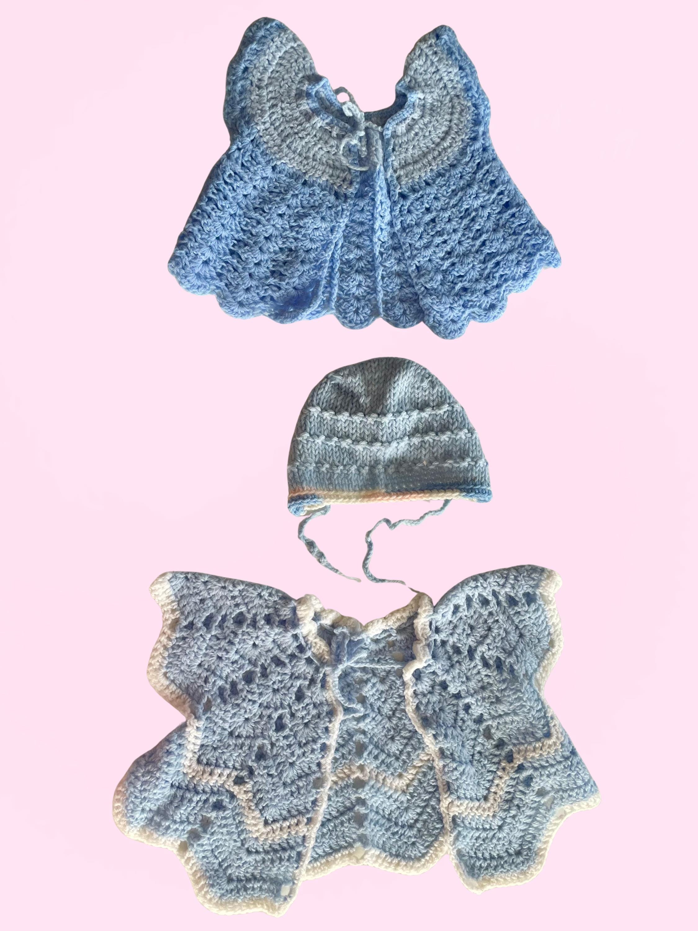Handmade Crocheted Baby Bundle - 2 blue tops 1 blue bonnet
