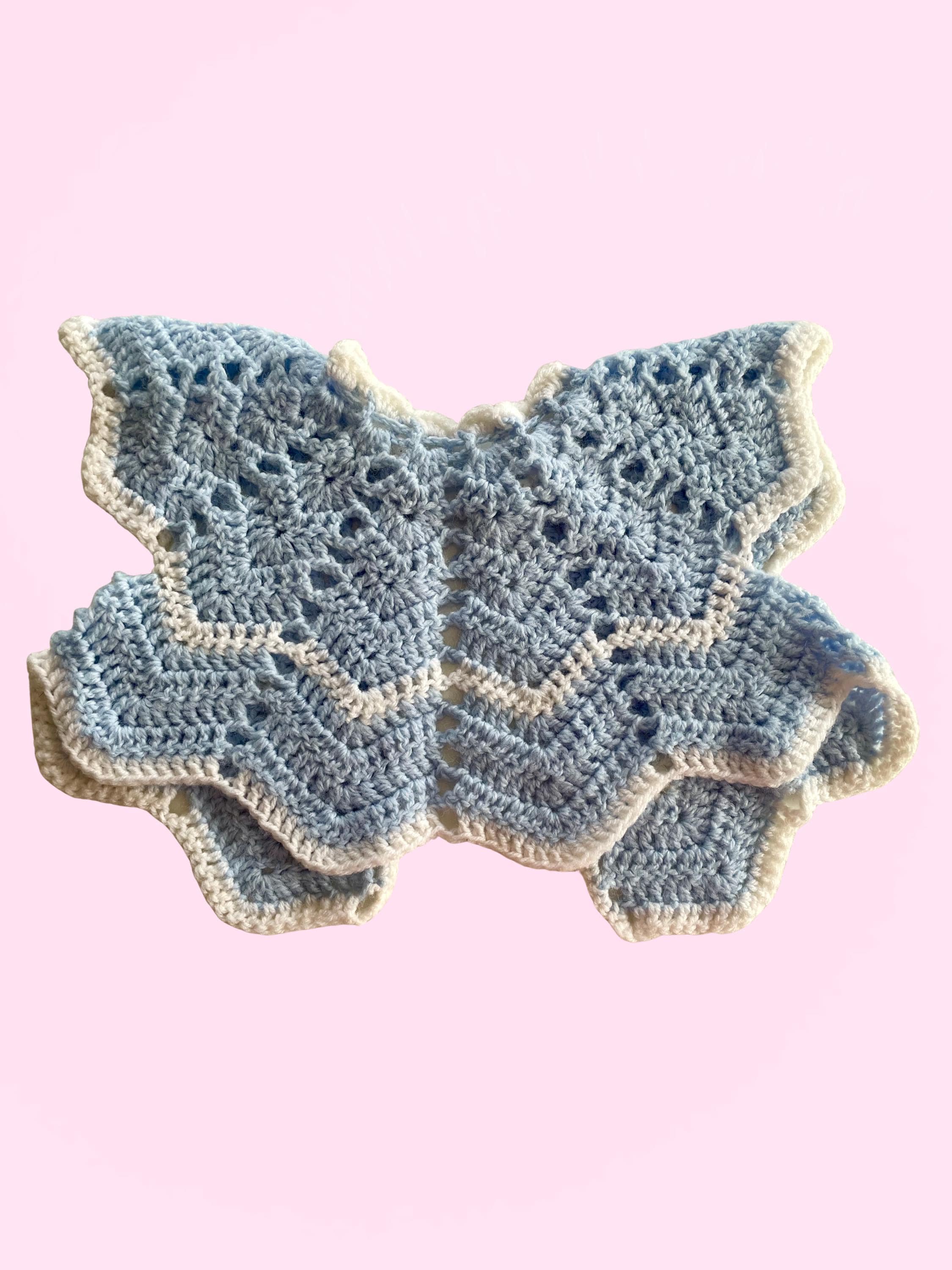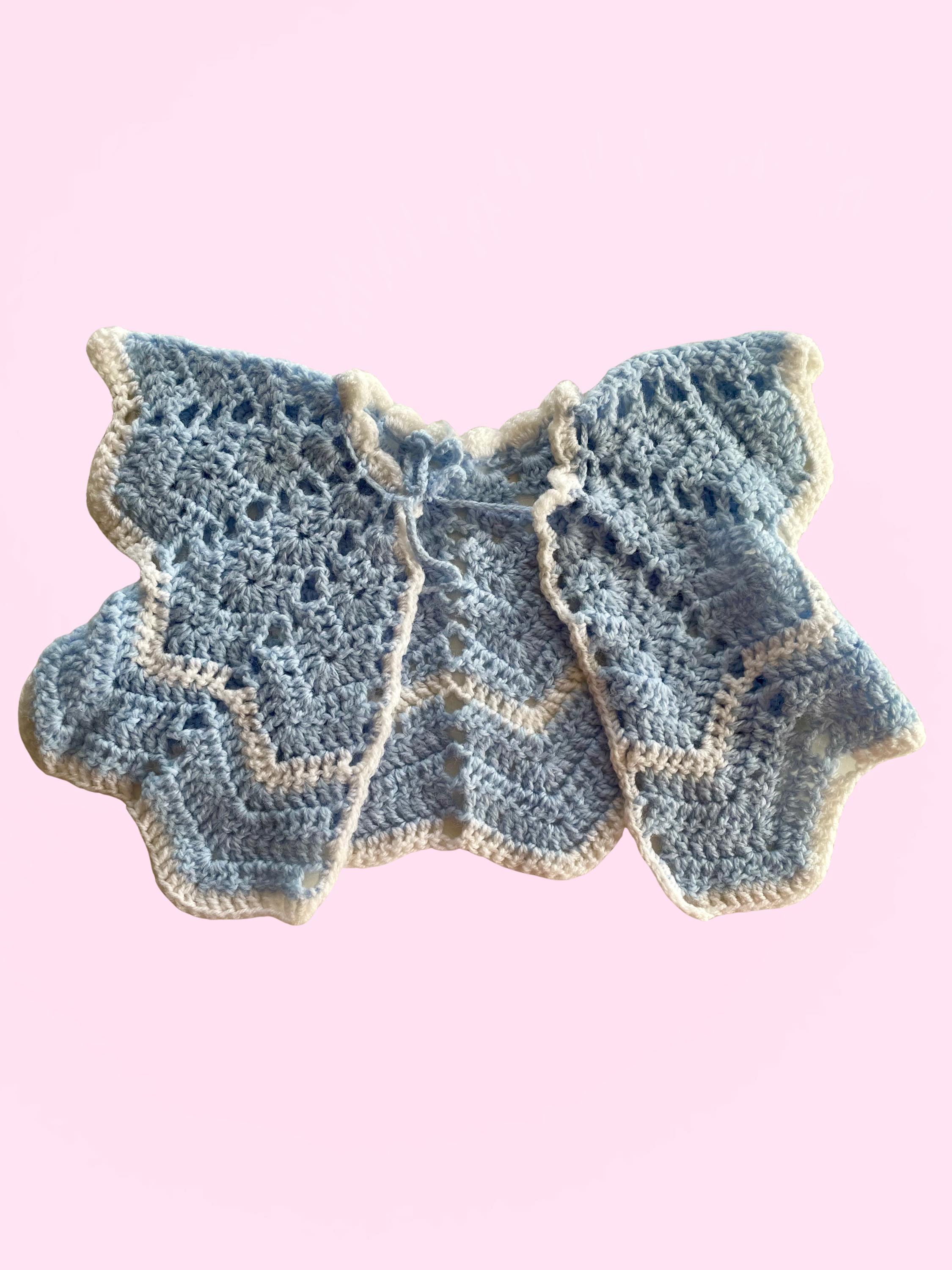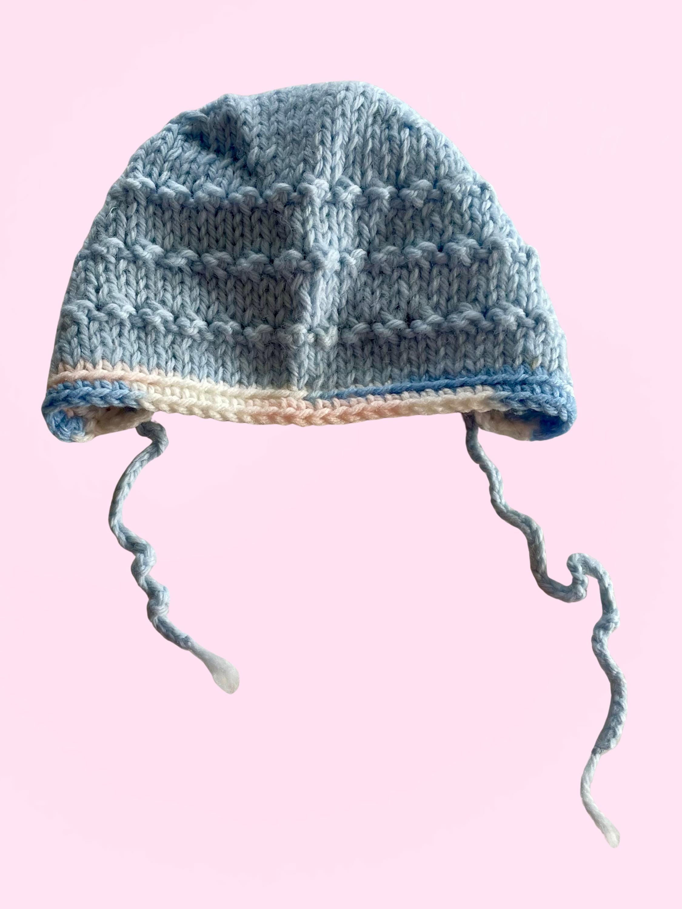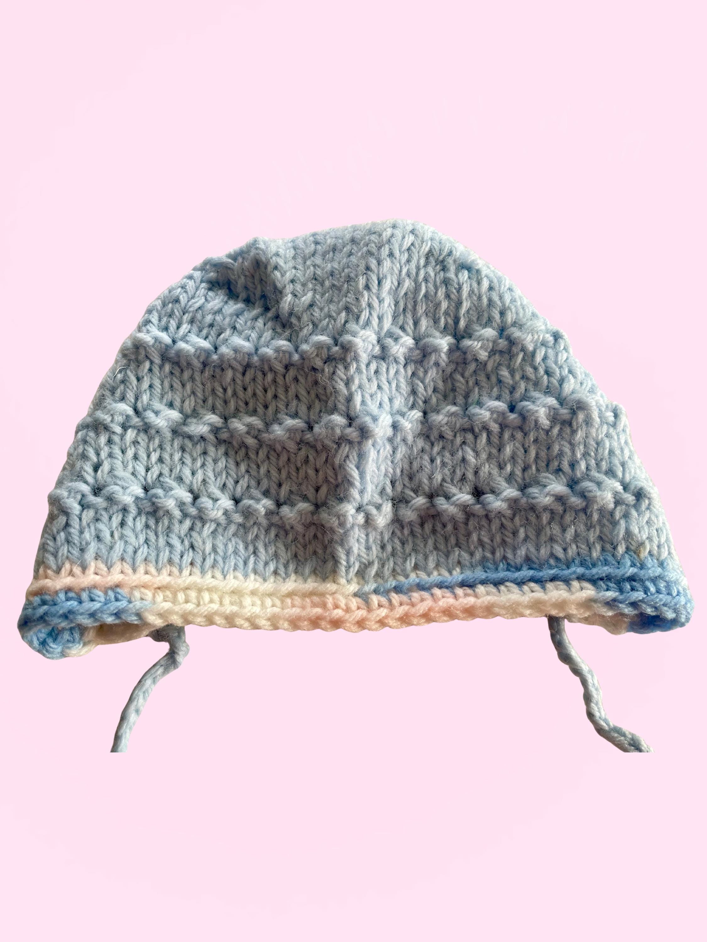 Handmade Crocheted Baby Bundle - 2 blue tops 1 blue bonnet