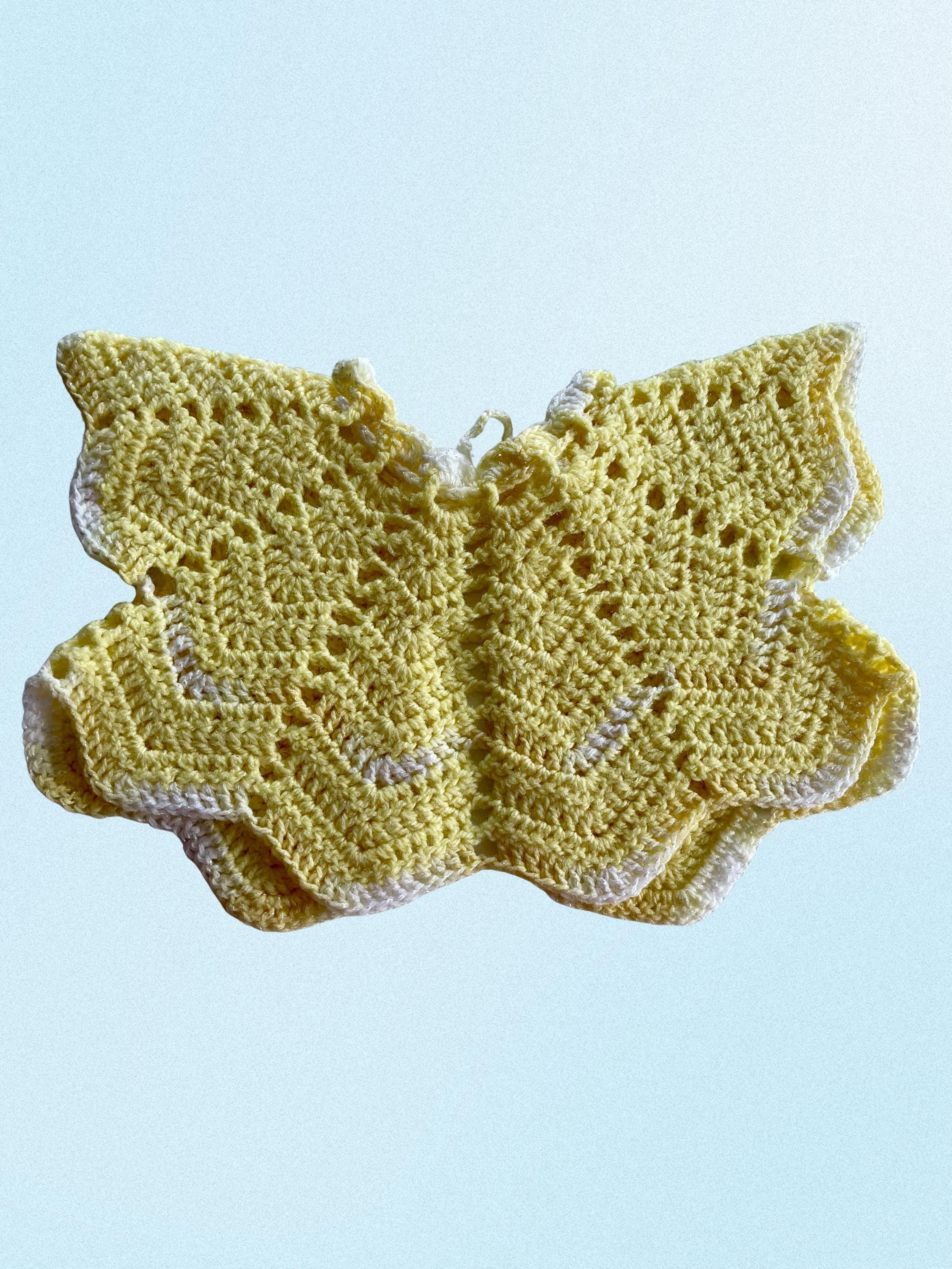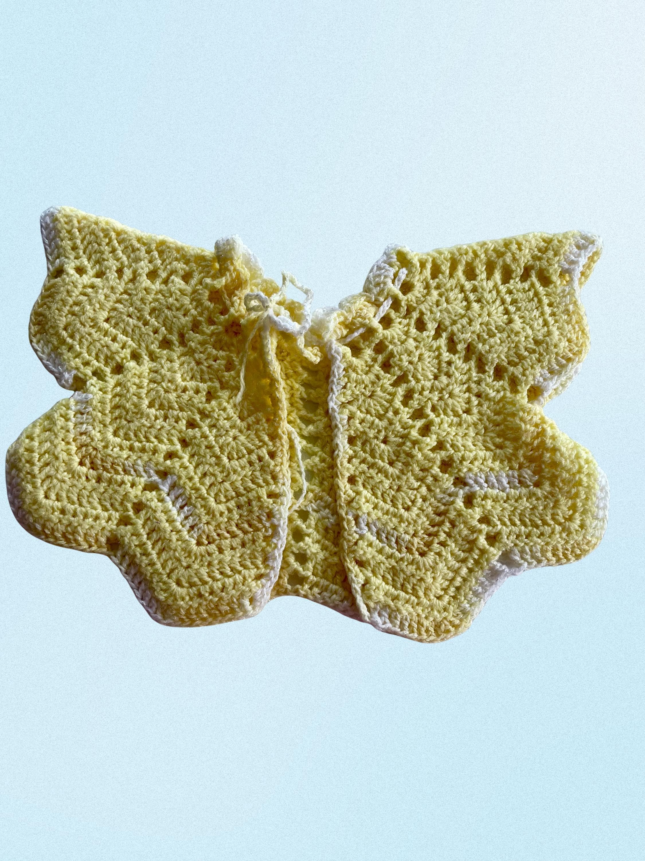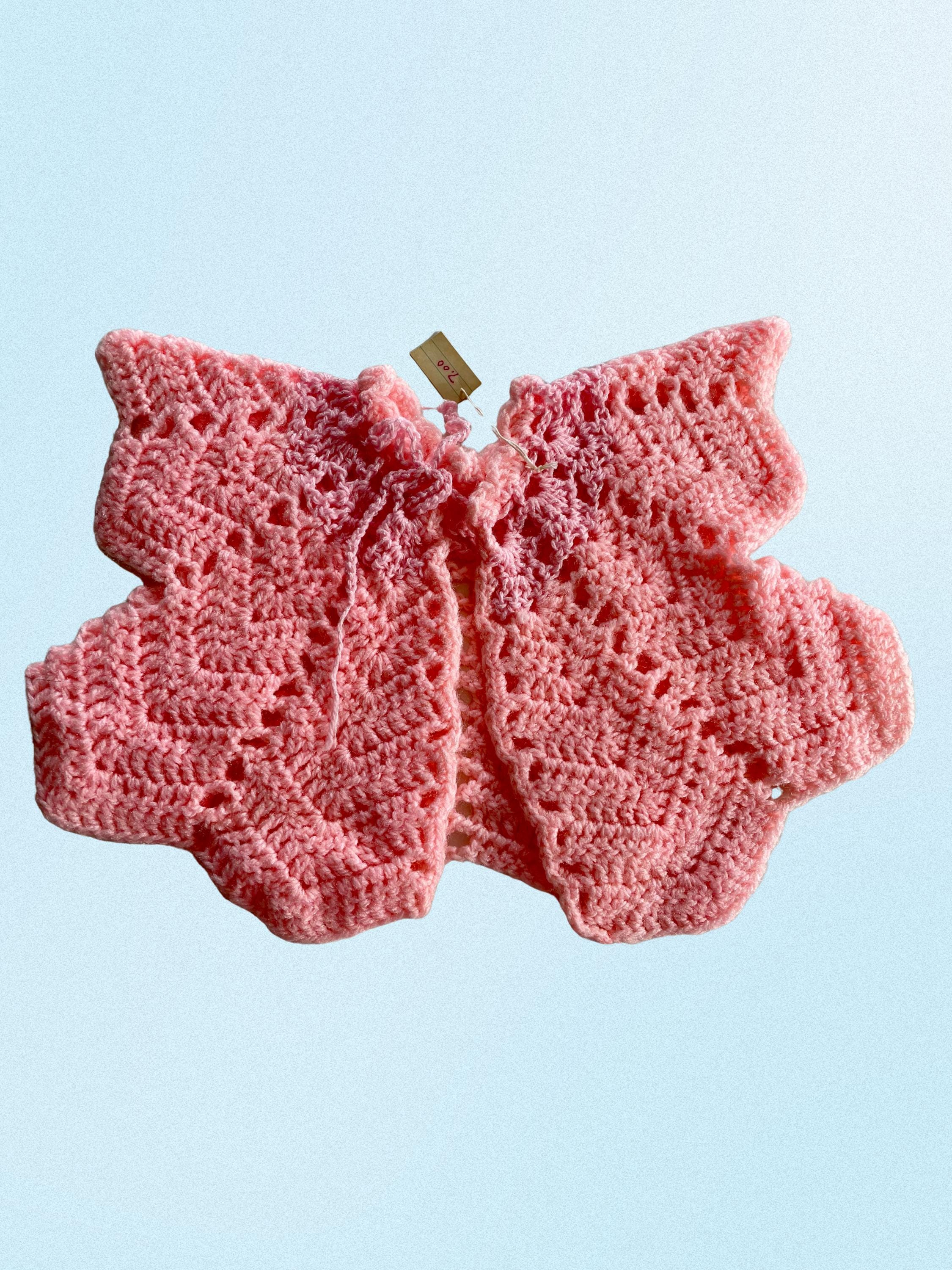 Hand crocheted baby set bundle. 2 sweater tops with tie closures & butterfly style sleeves for newborn.