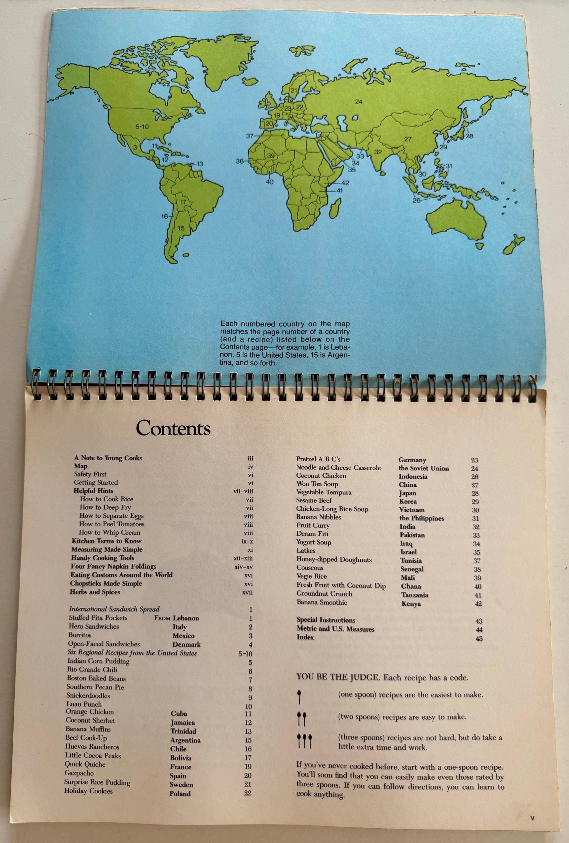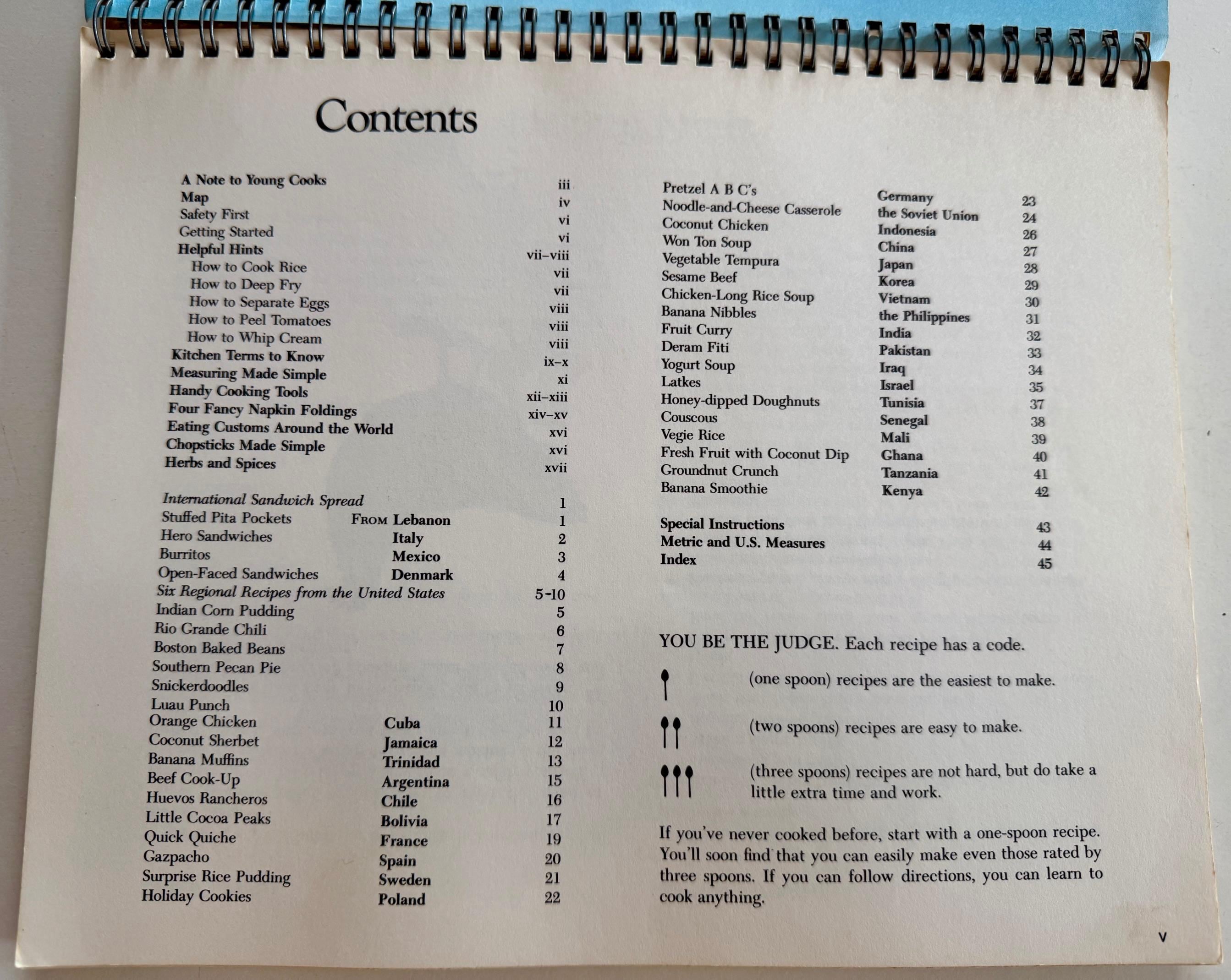 1980 Vintage International Cookbook For Boys & Girls, Spiral Bound, Recipes